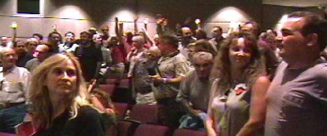 STANDING FIRM (7-27-2004) A standing-room-only crowd of more than 250 rises as one in support of the acquisition of the Ballardini Ranch. Washoe County Commission Chairman Jim Shaw asked for the indication as a way to save time given the hundreds of testimony cards he had received in support of the project. In contrast, only three citizens indicated opposition in writing. For more, see news headlines, below.